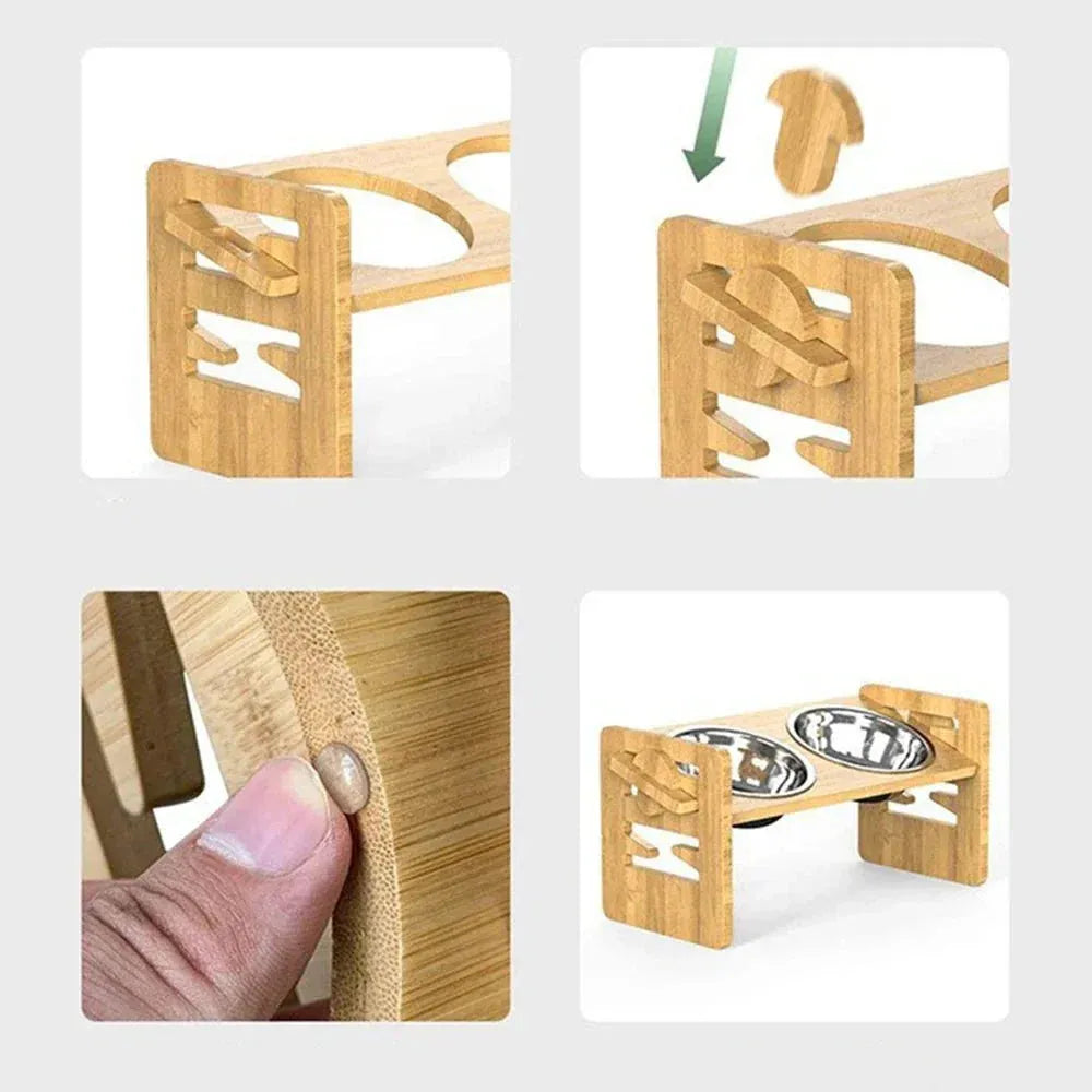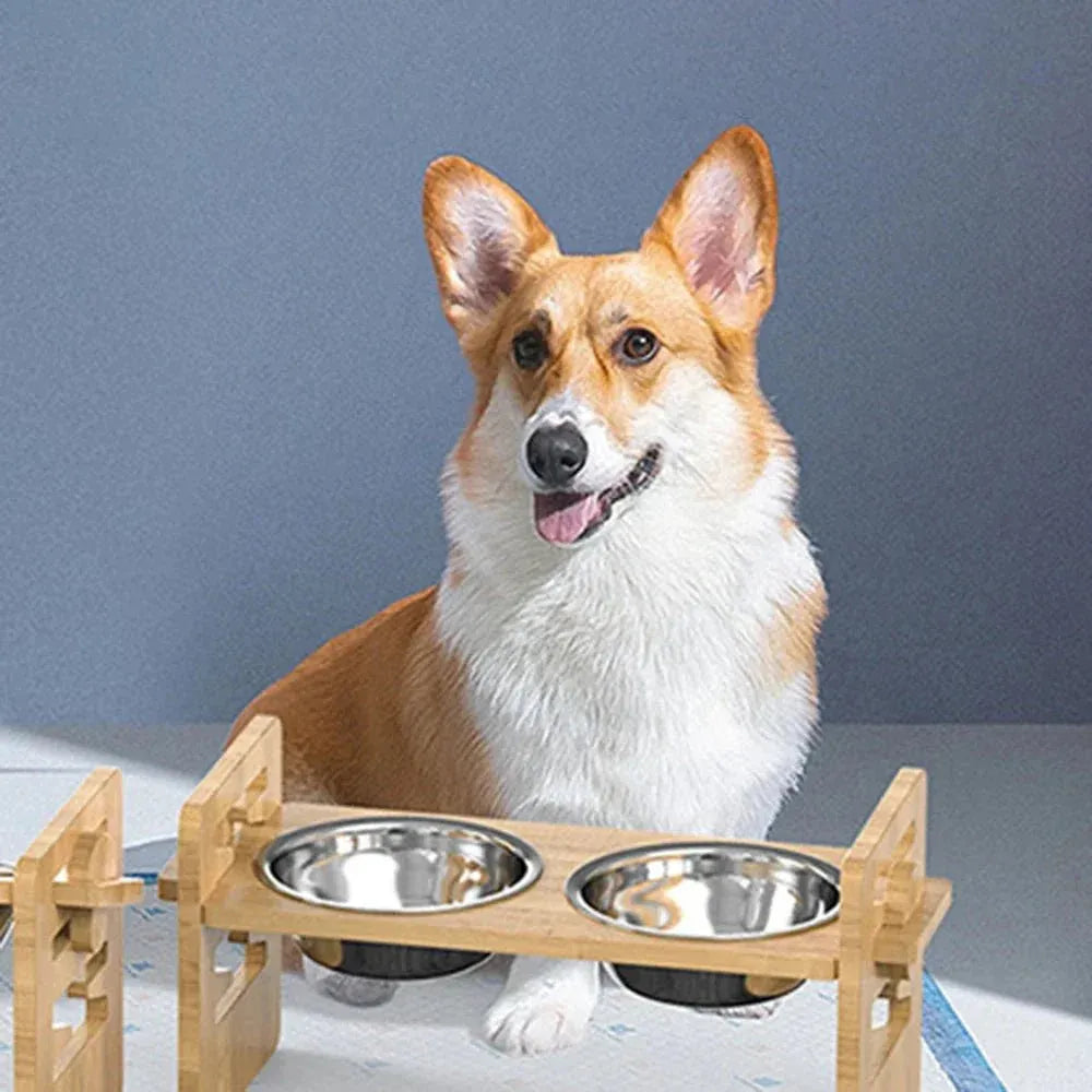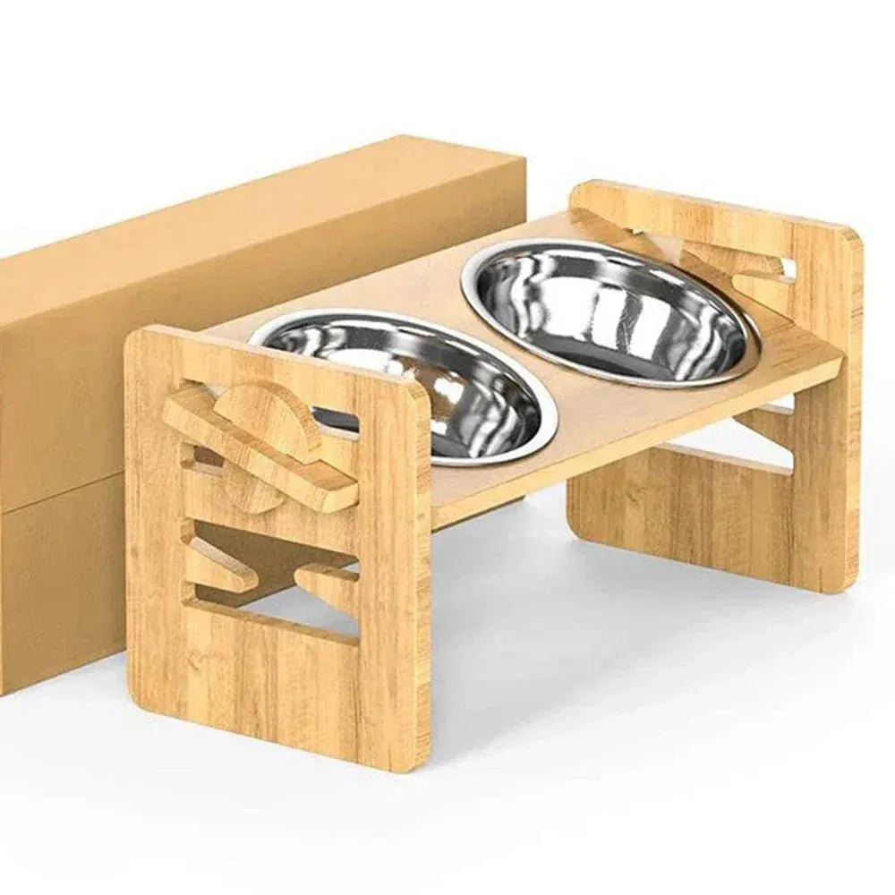 Verstelbare Houten Voederstandaard voor Honden en Katten